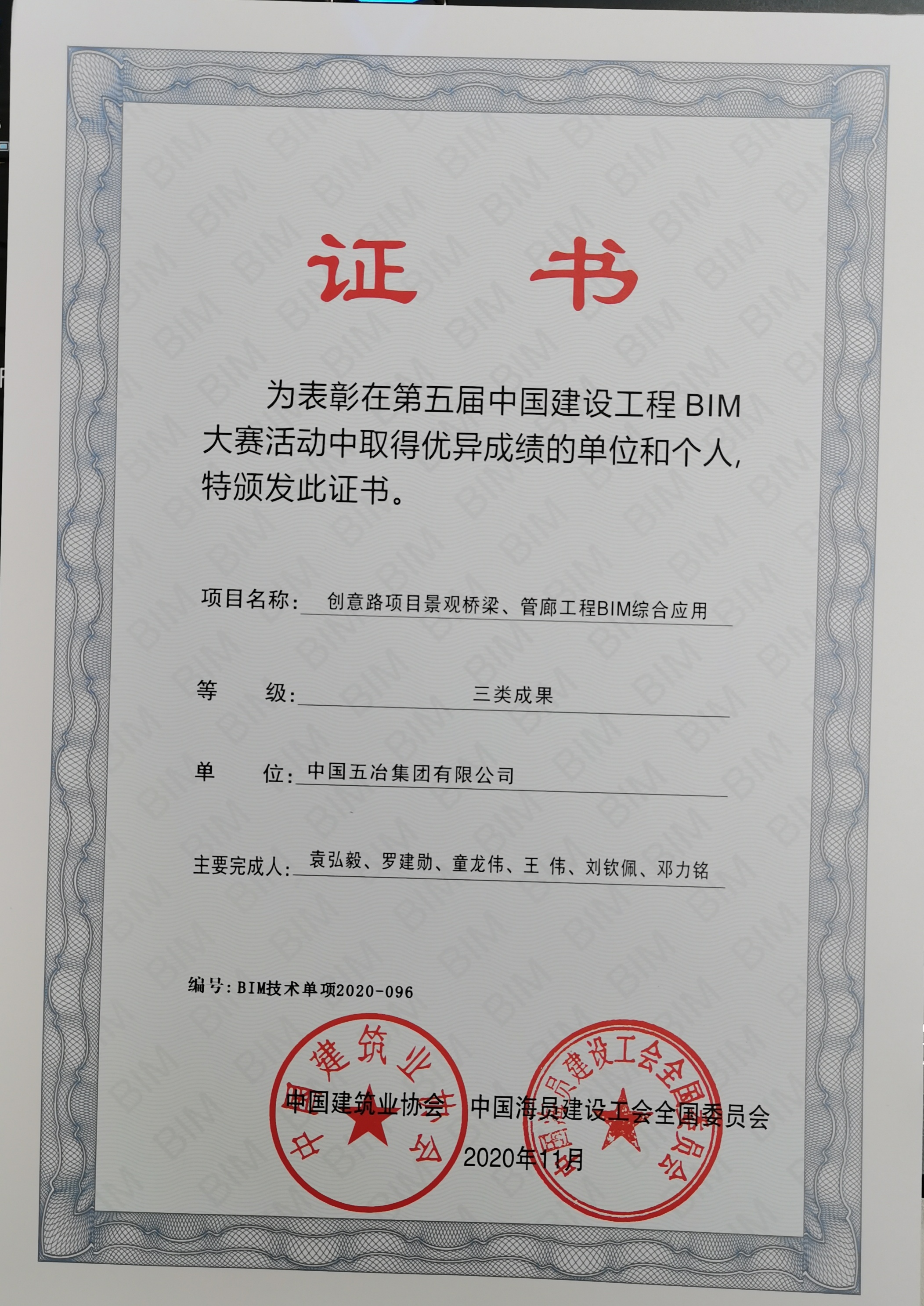 創意路項目景觀橋梁、管廊工程BIM綜合應用——第十一屆創新杯三等獎(工程建設專項)