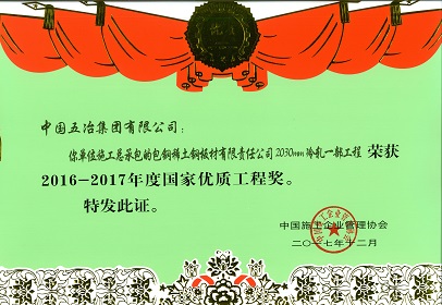 包鋼稀土鋼板材有限責任公司2030mm冷軋一部工程-2016-2017年度國家優質工程獎